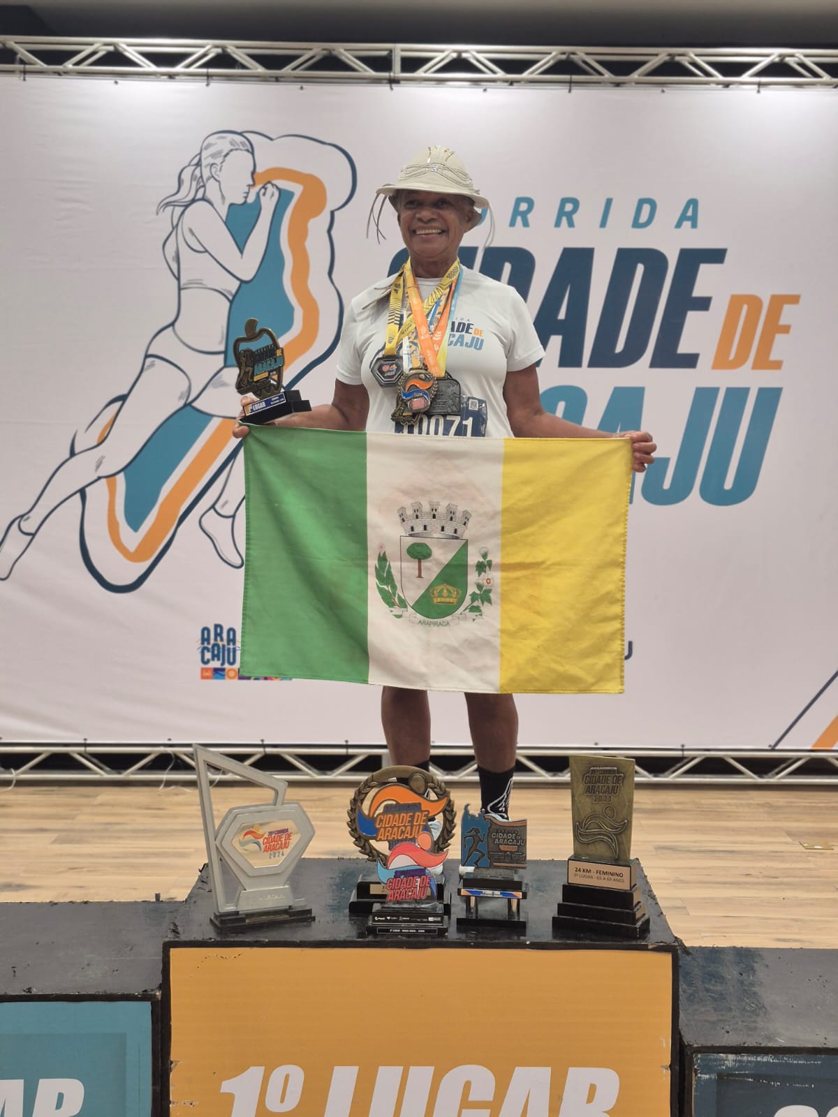A maratonista arapiraquense Maria do Carmo Cruz, a Caminha, de 68 anos, não para. Ela venceu e subiu ao pódio em 2º lugar na 41ª edição da Corrida Cidade de Aracaju, que aconteceu no dia 28 de março deste ano.