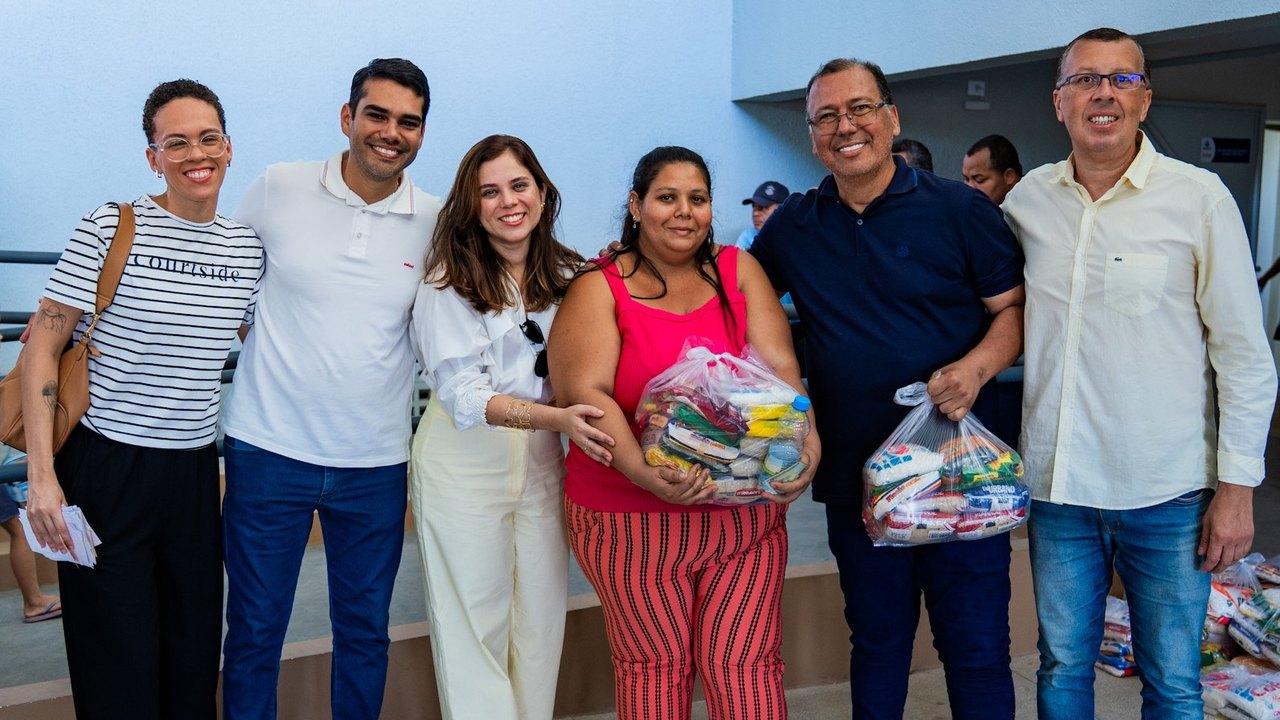 As cestas básicas foram entregues pelos secretários de Esporte, Fabiano Leão, e de Desenvolvimento Social, Fabrícia Galindo, com o apoio das equipes das duas secretarias municipais.