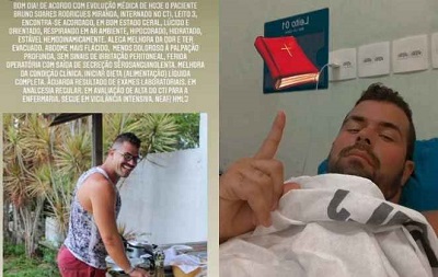 Neste domingo (29), através do seu perfil no Instagram, foi divulgado um novo boletim médico do estado de saúde de Bruno Miranda, conhecido como o Borat, de Amor & Sexo. O modelo está internado no Hospital Municipal Lourenço Jorge, na Barra da Tijuca, Rio de Janeiro, após levar um tiro, na última quarta-feira (25).