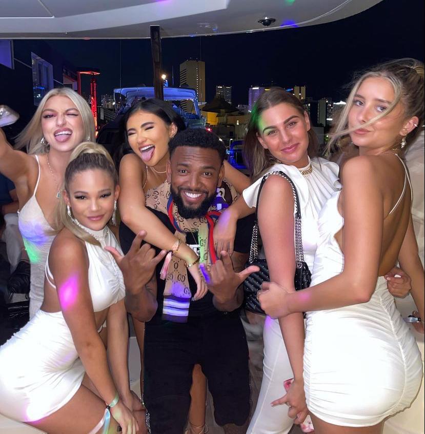 Após o post da ex, Nego do Borel compartilhou um clique em que aparece rodeado de mulheres em uma balada em Miami na madrugada desta segunda-feira (14). Na legenda, o cantor escreveu em tom de brincadeira “Ainda bem que tá geral dormindo”.