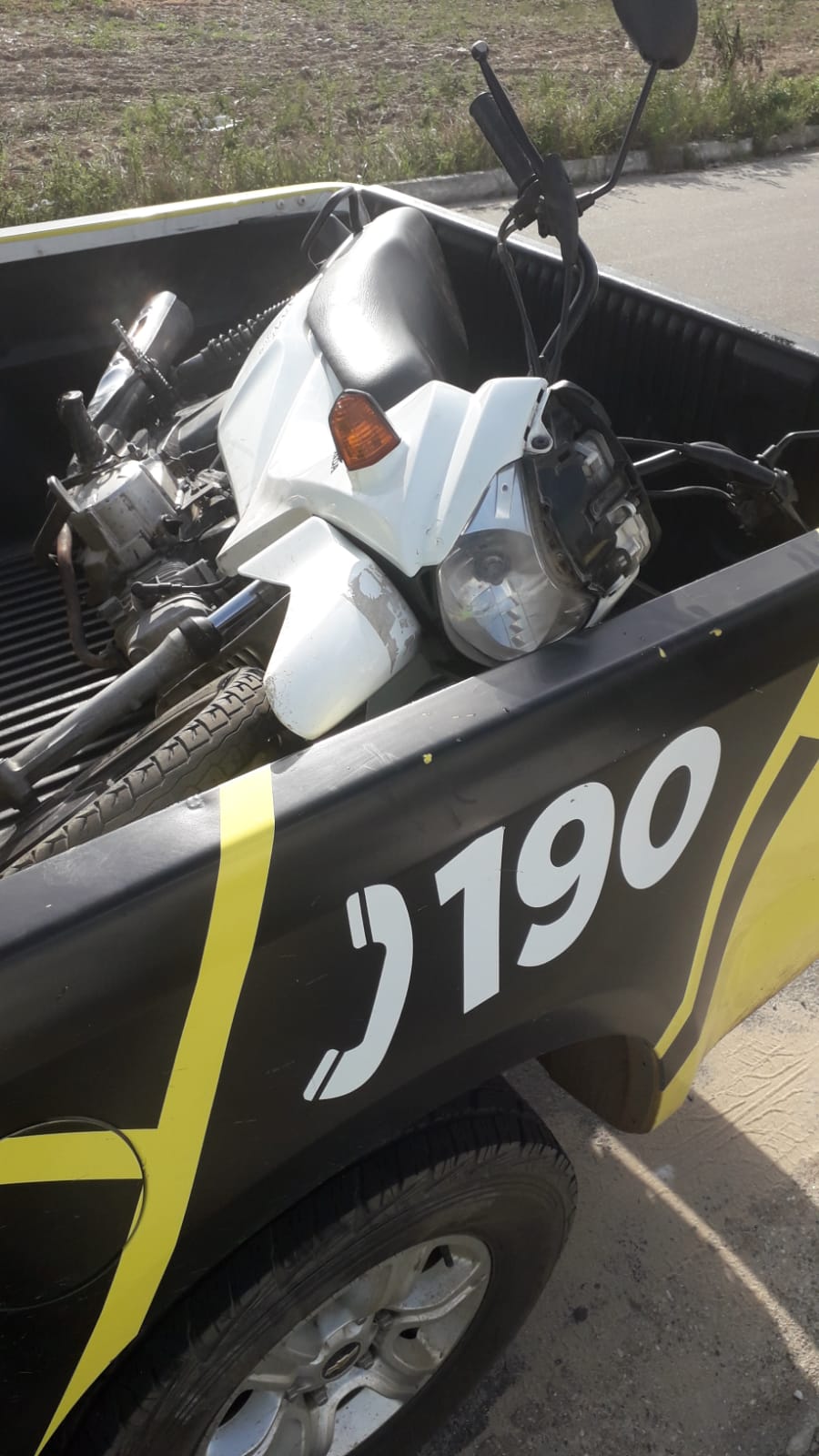 A dupla foi rendida e imobilizada. O material descartado pelos suspeitos, um simulacro de arma de fogo e celulares, foi localizado e apreendido.