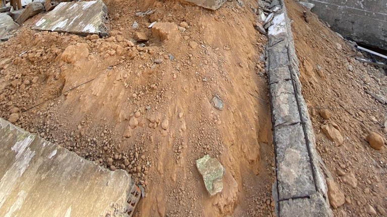 Como é possível ver na imagem cedida pelo dono, foram formadas verdadeiras crateras, além de rachaduras e o desmoronamento de uma parede.