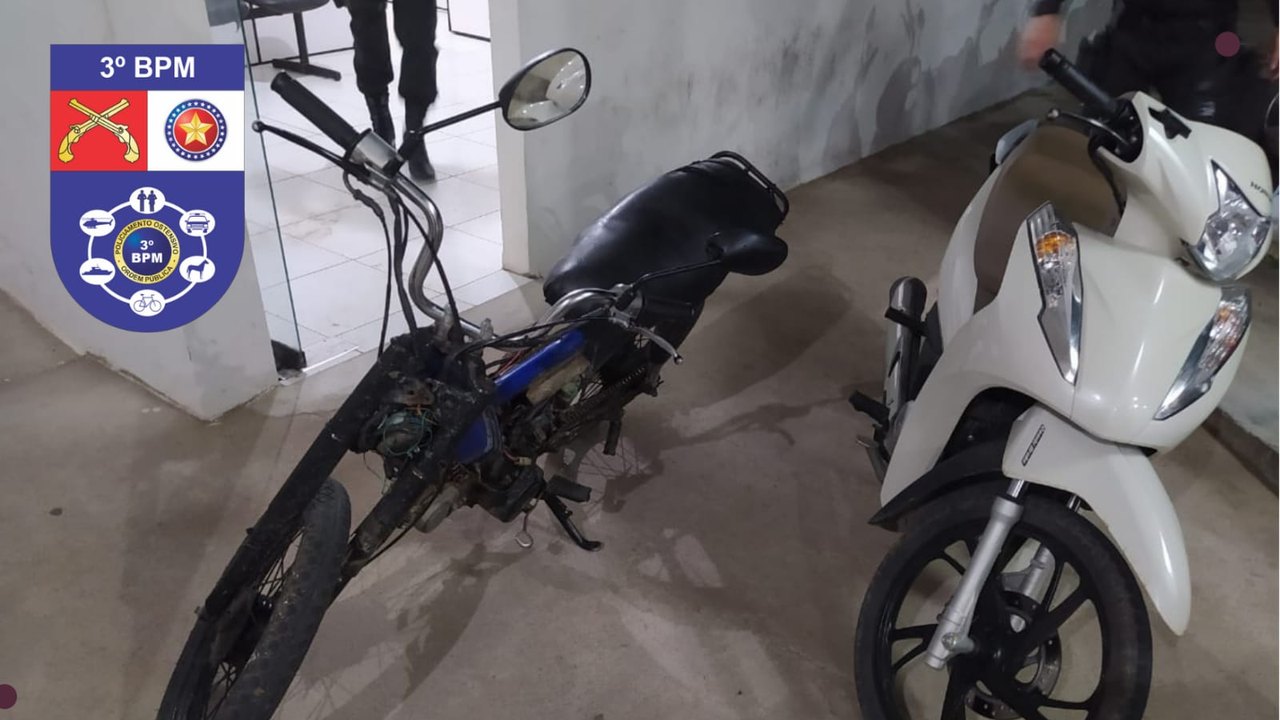 Ao consultar o sistema da polícia, foi constatado que a moto era roubada, e ao entrar em contato com vítima, foi passado as características dos autores do roubo. Os militares tiveram acessoa a um vídeo do momento do roubo.