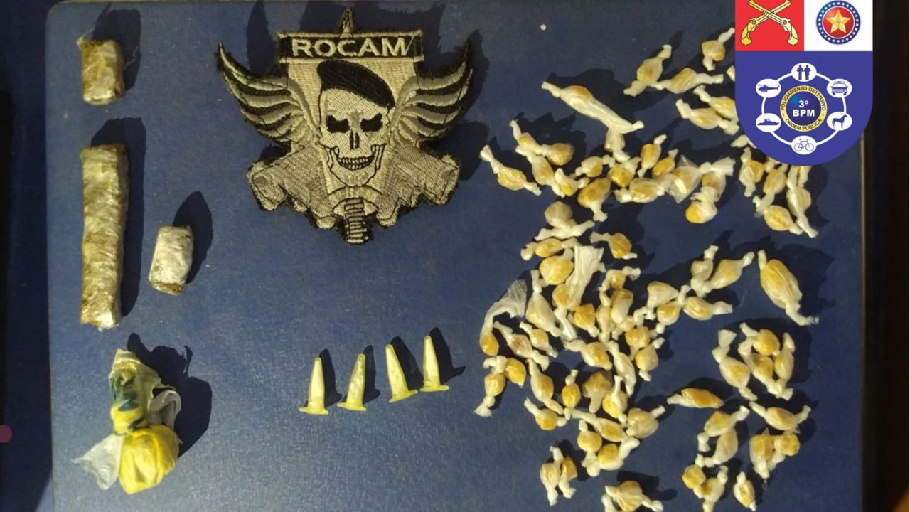Dentro da chácara, os militares encontraram 4 pinos de cocaína, 94 pedras de crack, 20g de maconha.