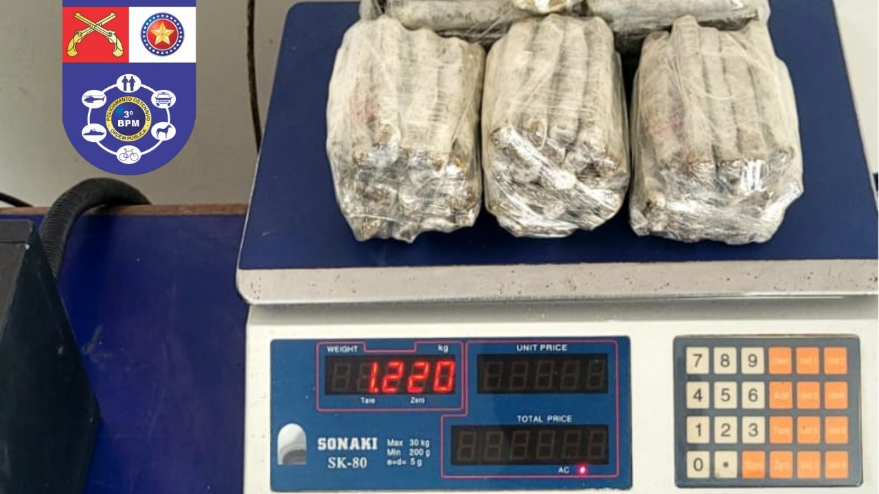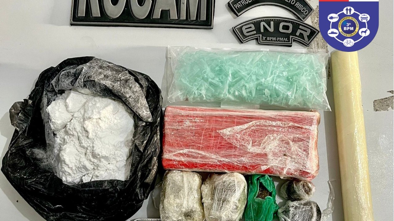 Ainda no bairro Manoel Teles, na Rua Domingos Evangelista, um jovem de 21 anos foi preso após a polícia encontrar drogas na cozinha da casa do jovem. No local foram apreendidas 1,220 kg de maconha; R$31,00 em espécie; um celular; um tubo de plástico filme; várias sacolas de plástico para embalagem e uma maquineta de cartão de crédito.