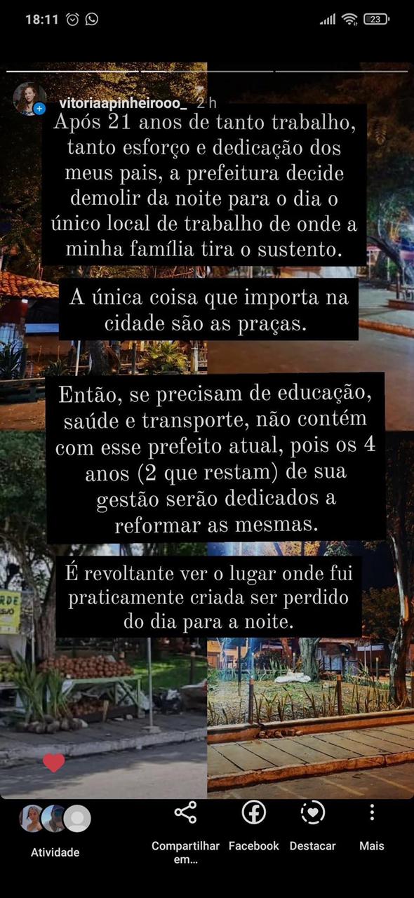 "É revoltante ver o local onde fui praticamente criada ser demolido do dia para a noite", completou.