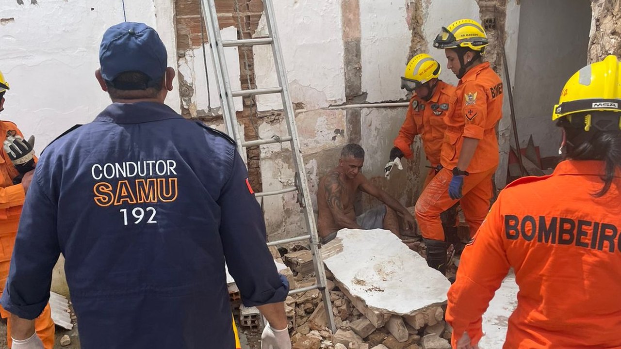 Um pedreiro, de 52 anos e identidade não revelada, ficou ferido após a parede de uma casa cair sobre ele. O caso ocorre em frente ao prédio do Instituto Federal de Alagoas (IFAL) no bairro do Poço, em Maceió.