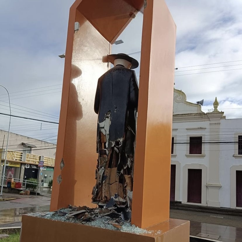 Uma imagem de Padre Cícero foi destruída por um vândalo no Centro de Campo Alegre na madrugada desta quarta-feira (17).