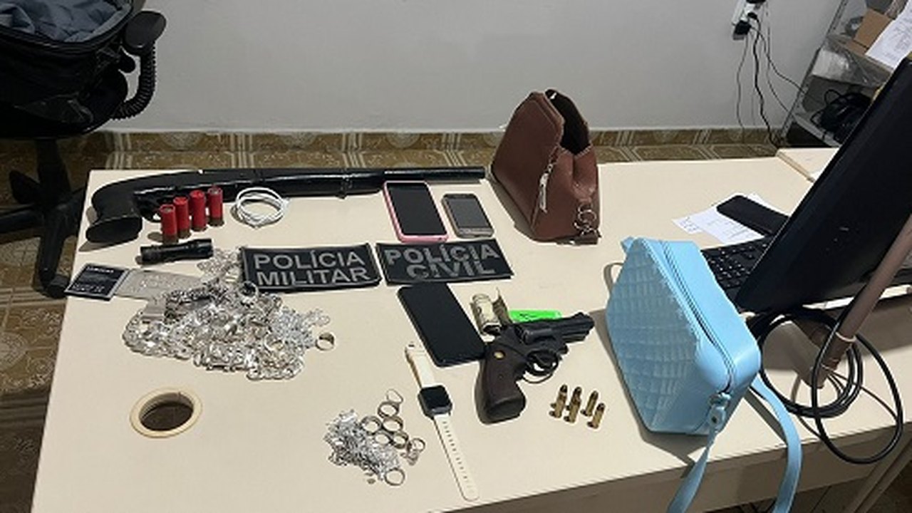 No quarto da pousada, foram encontradas duas armas de fogo (uma de grosso calibre e um revólver de calibre 38), além de objetos roubados, em sua maioria joias.