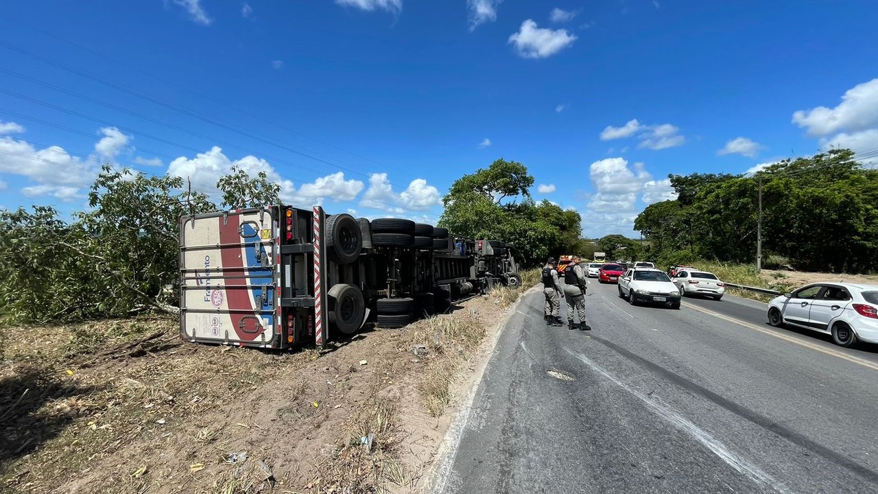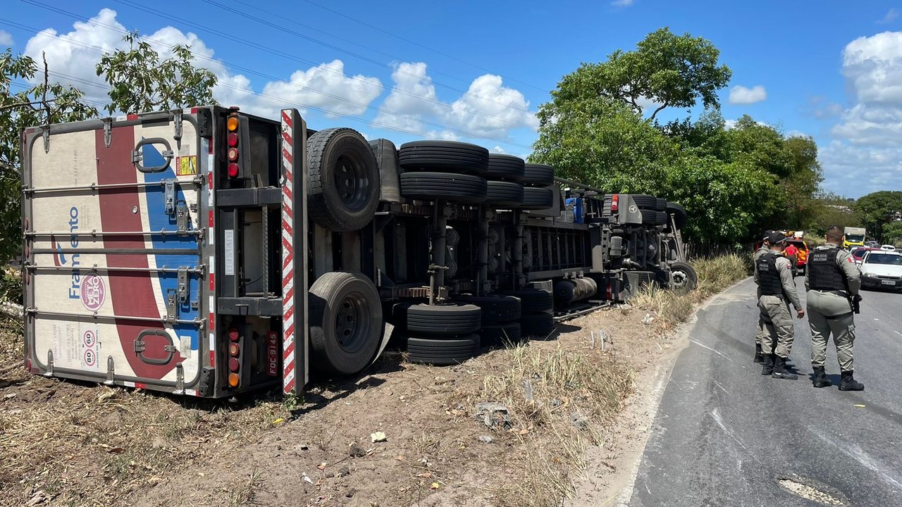 Uma carreta tombou, na manhã de hoje, domingo, 12, e deixou um homem, de 51 anos, ferido em um trecho da BR-316, na Ladeira do Catolé, em Satuba. Três viaturas e onze militares do Corpo de Bombeiros foram encaminhados ao local para realizar o socorro da vítima.