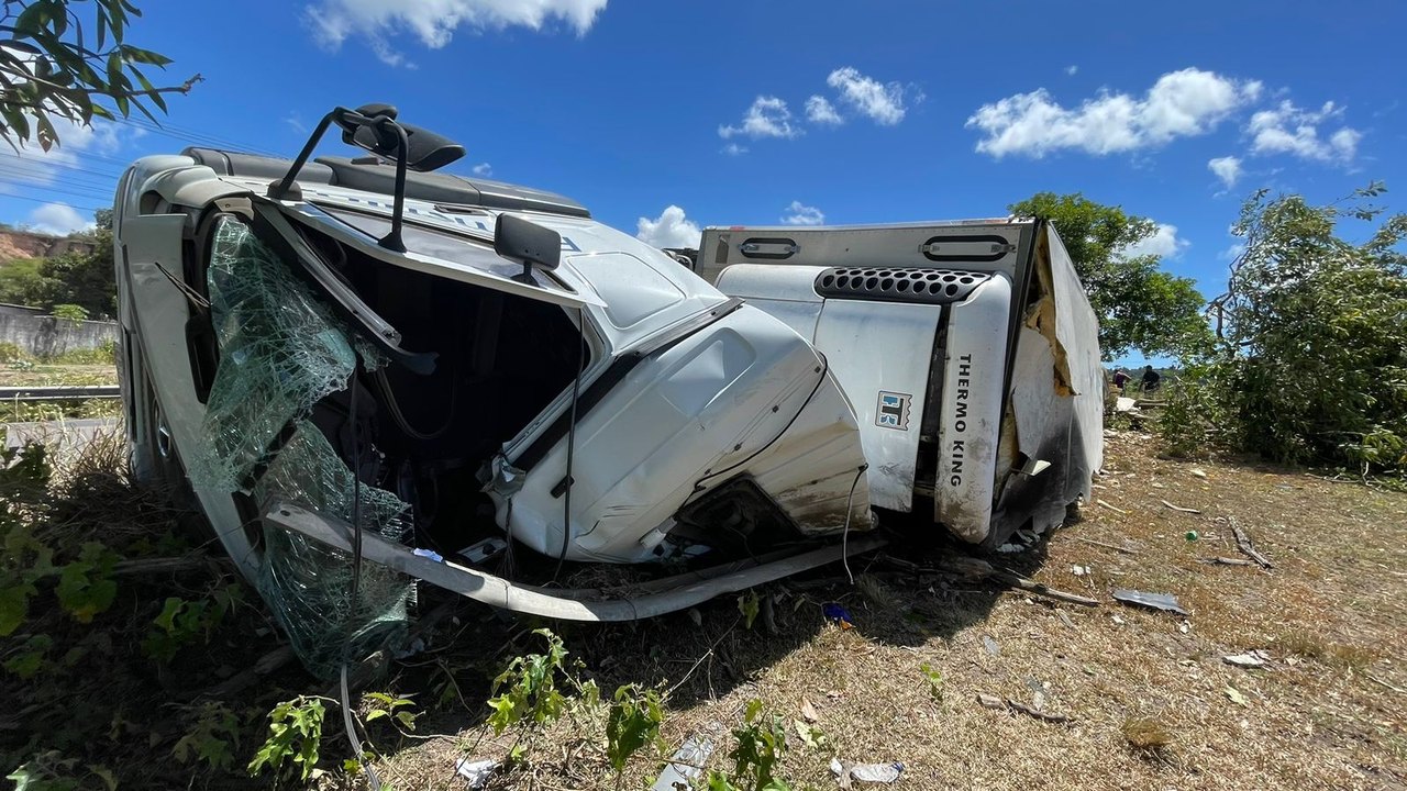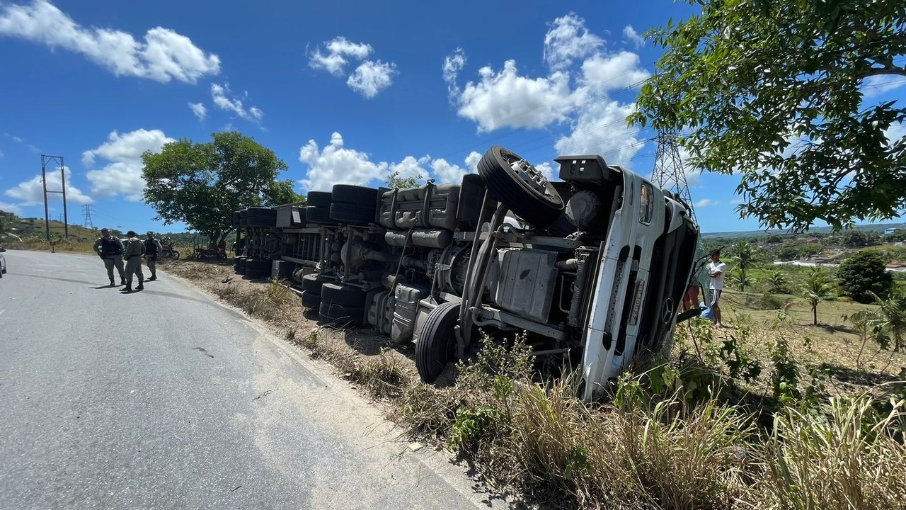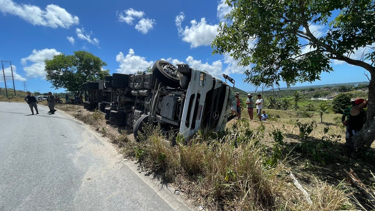 Carreta tomba e deixa motorista ferido, na ladeira do Catolé, em Satuba