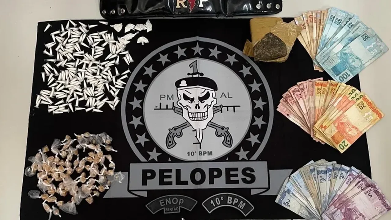 Em Santana do Ipanema, o 7º BPM foi acionado para apurar uma tentativa de homicídio no bairro Baraúna. Durante as diligências, a guarnição localizou o suspeito escondido em uma residência no bairro Arthur Morais. No local, foram apreendidos 830 gramas de maconha, 45 gramas de cocaína, nove gramas de crack, uma balança de precisão e seis munições intactas. O homem foi preso e conduzido à delegacia.