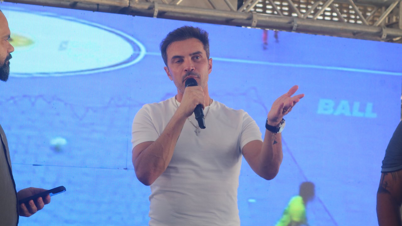 “Finalmente aqui a gente requalificou completamente o ginásio de esportes João Paulo II, essa obra que havia sido feita no outro mandato meu, e agora nós estamos aqui abrindo. Quem entrou não reconheceu, né? Foi completamente refeito. O piso é orientado inclusive para grandes competições nacionais. E para marcar essa noite, temos aqui o maior atleta de futsal do mundo, o Falcão, o que é uma grande homenagem para Arapiraca”, destacou o prefeito.