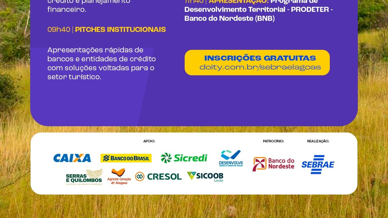 🔗 Inscreva-se gratuitamente: doity.com.br/seminario-cred-turismo-arapiraca
