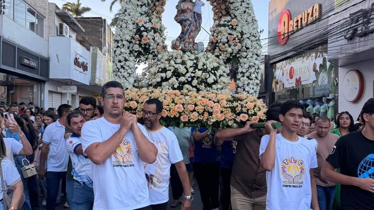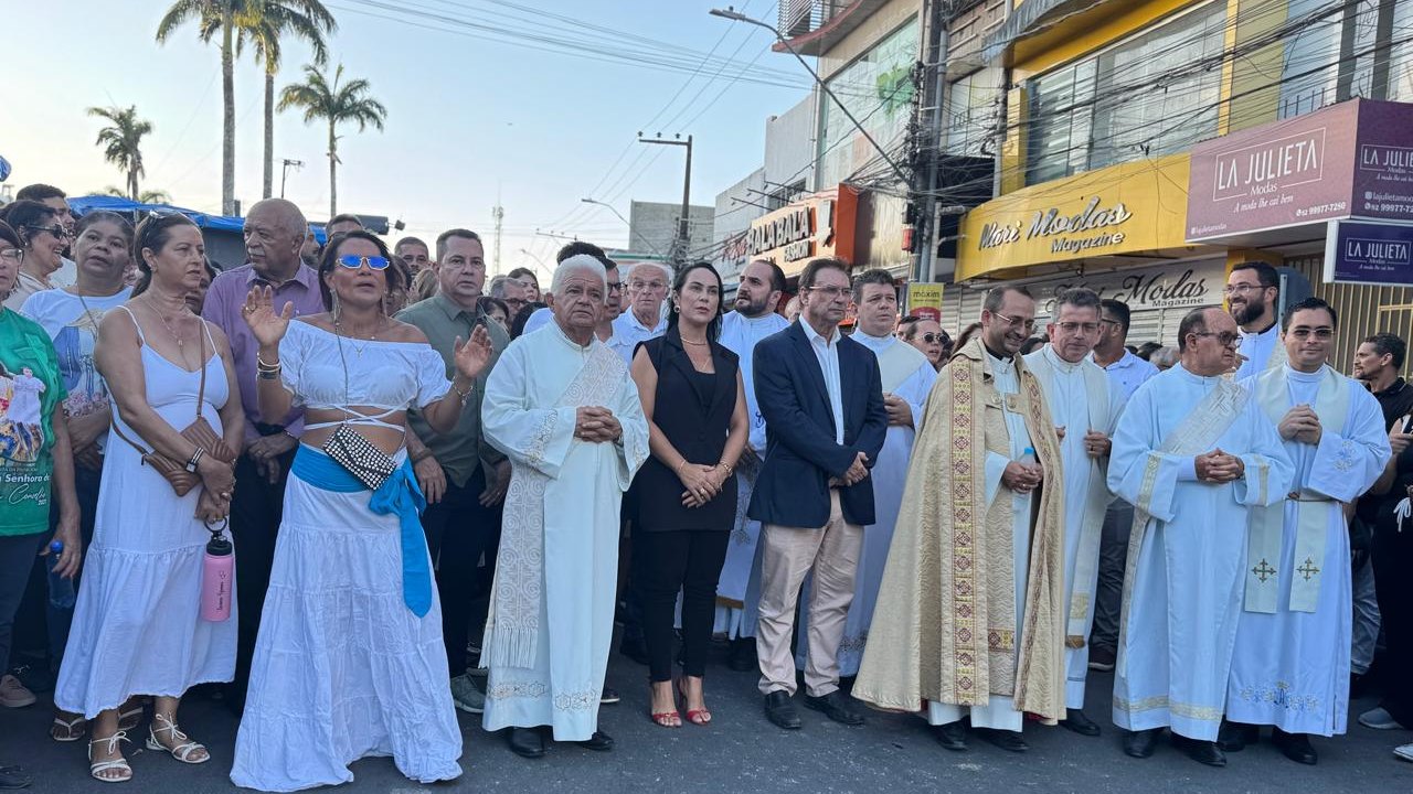 Cavaleiros, amazonas e fiéis seguiram em procissão rumo à Concatedral Nossa Senhora do Bom Conselho, em um percurso iniciado na comunidade da Massaranduba. Ao longo do trajeto, a população formou um grande corredor humano, com orações e com pétalas de rosas lançadas ao chão.