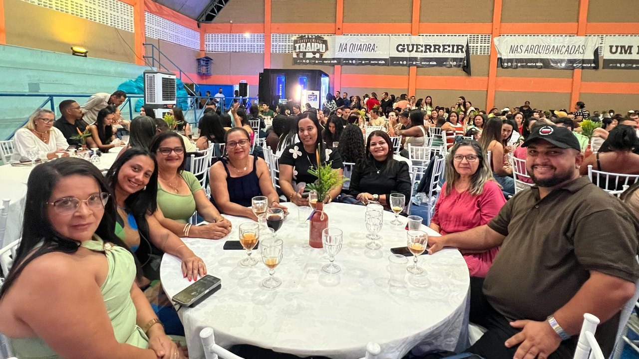 Os professores receberam as boas-vindas do secretário de Educação, Reginaldo Farias, realizaram o credenciamento com reconhecimento facial, ganharam mochila, camisetas e outros brindes. No evento, também teve música, momentos lúdicos, sorteio de brindes, jantar e coffee break