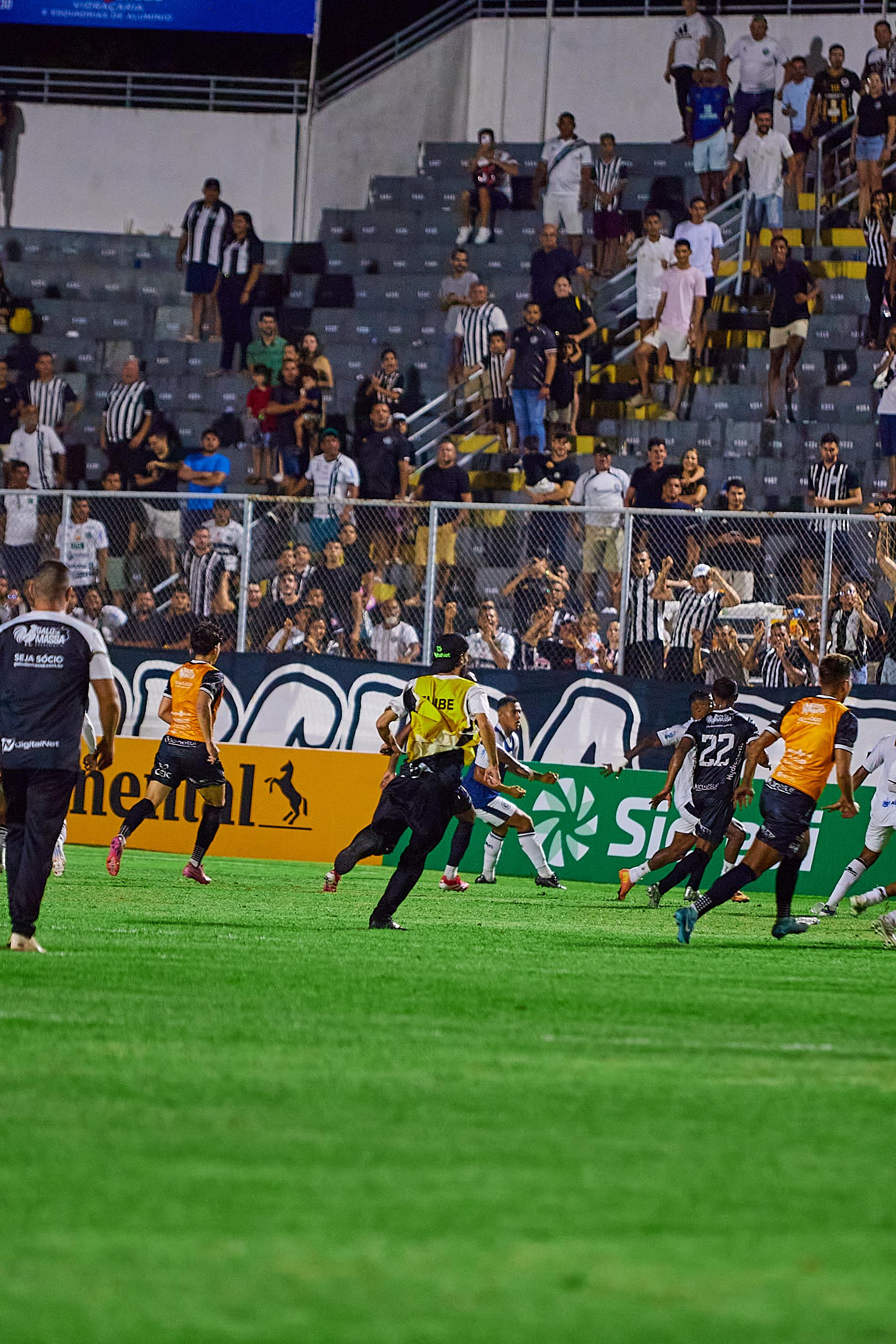 O árbitro detalhou que houve “correria, diversas agressões e tentativas de agressões através de chutes, socos e empurrões”. Em seguida, torcedores do time mandante invadiram o campo, sendo contidos rapidamente pelo efetivo policial, que controlou os ânimos.