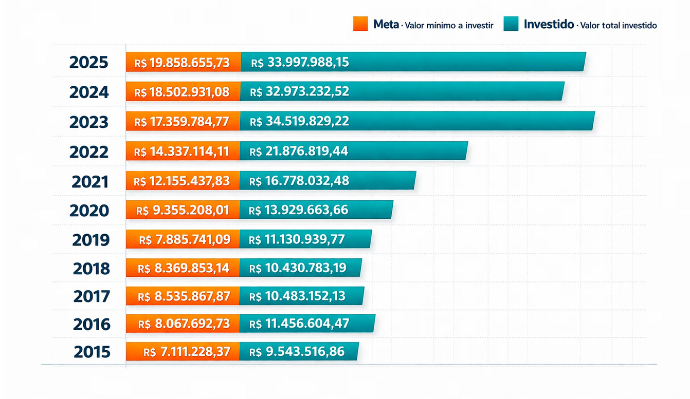 Neste período, a gestão manteve uma média anual de R$ 11,5 milhões em recursos próprios aplicados além da obrigação legal, garantindo a manutenção de exames, medicamentos e a valorização das equipes de saúde.
