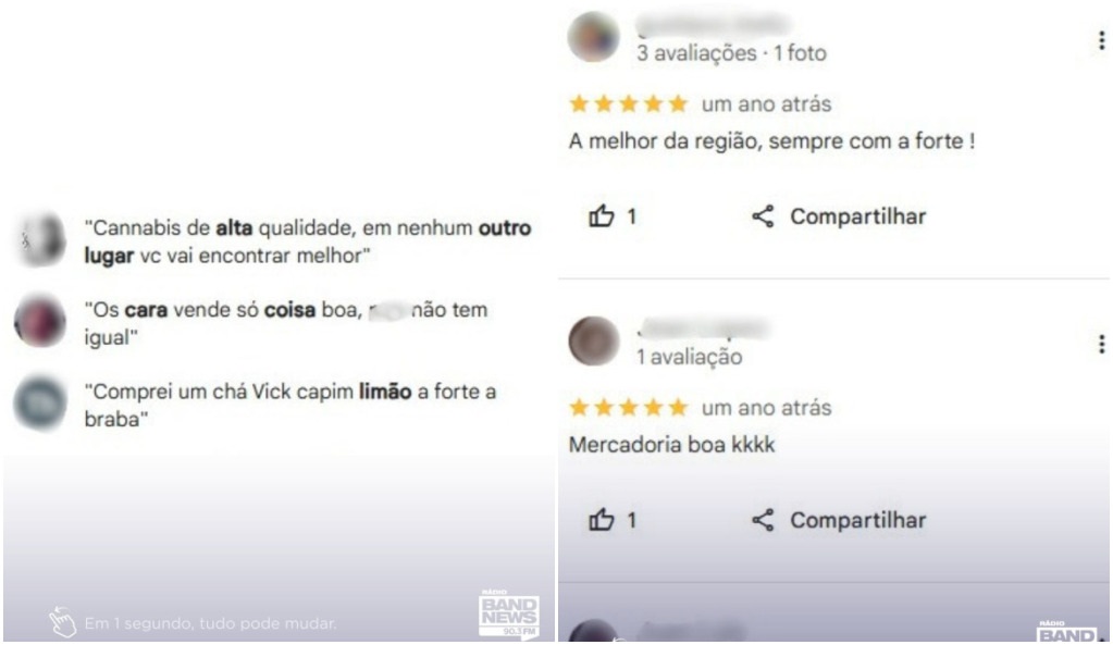 Em um dos comentários, um usuário escreve de forma explícita: 'cannabis de alta qualidade, em nenhum outro lugar você vai encontrar melhor'. Outro internauta ainda diz que o ponto de venda funciona 24 horas, e só interrompe as atividades quando o caveirão, que é o blindado da PM, chega.